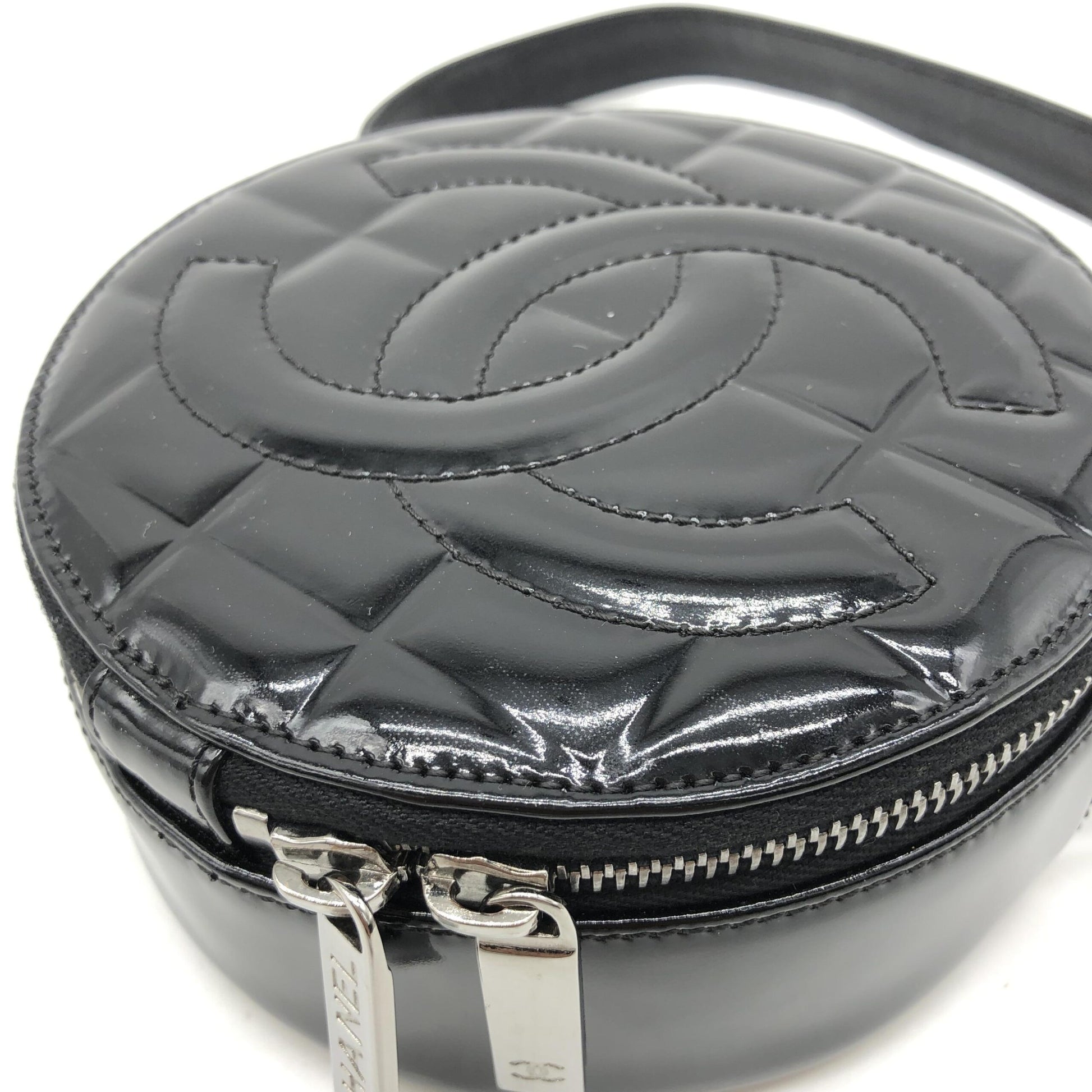 Chanel Black Patent Quilted CC Circle Mini Bag