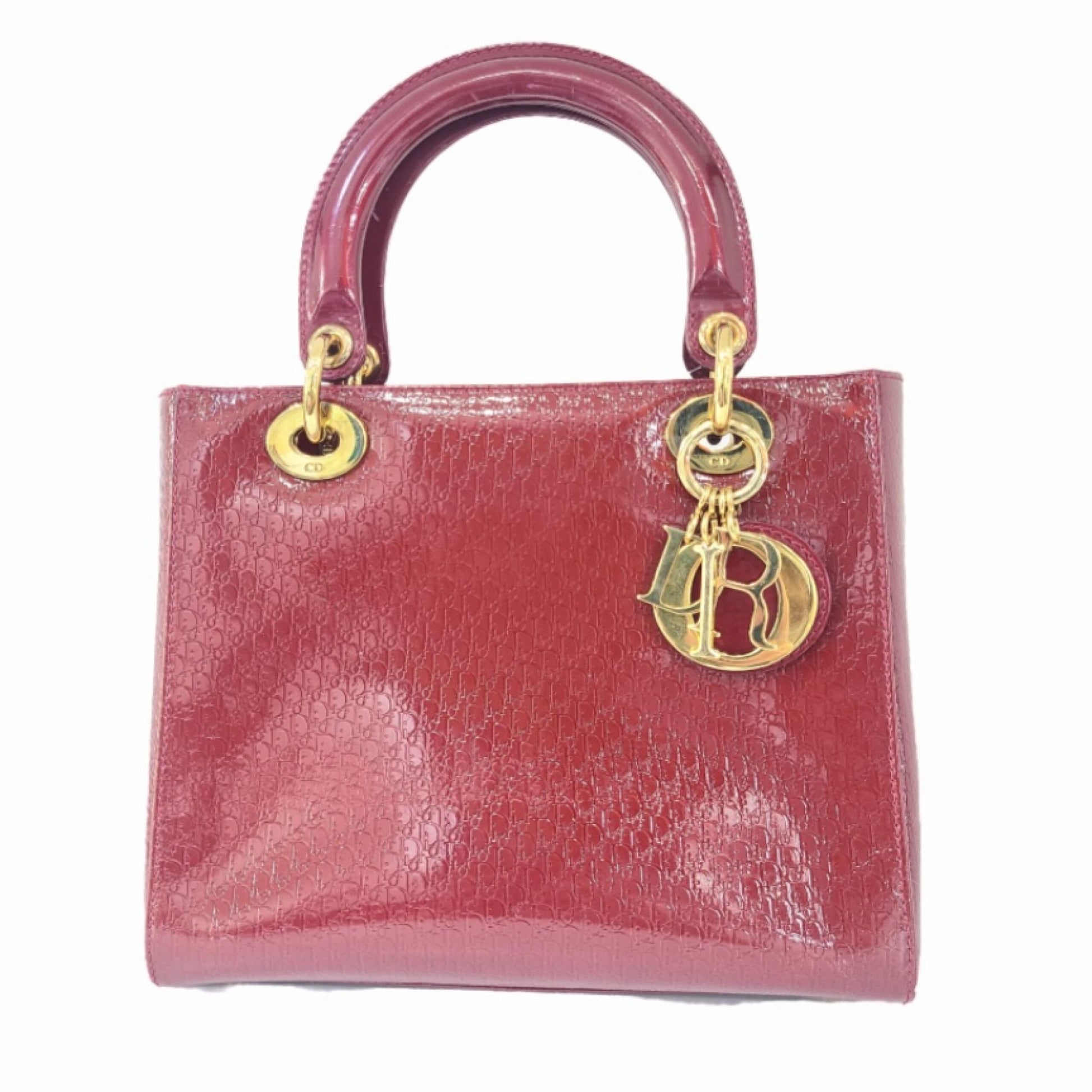Christian Dior Lady D-Lite Patent Leather Burgundy Patent Leather Handbag With Charms