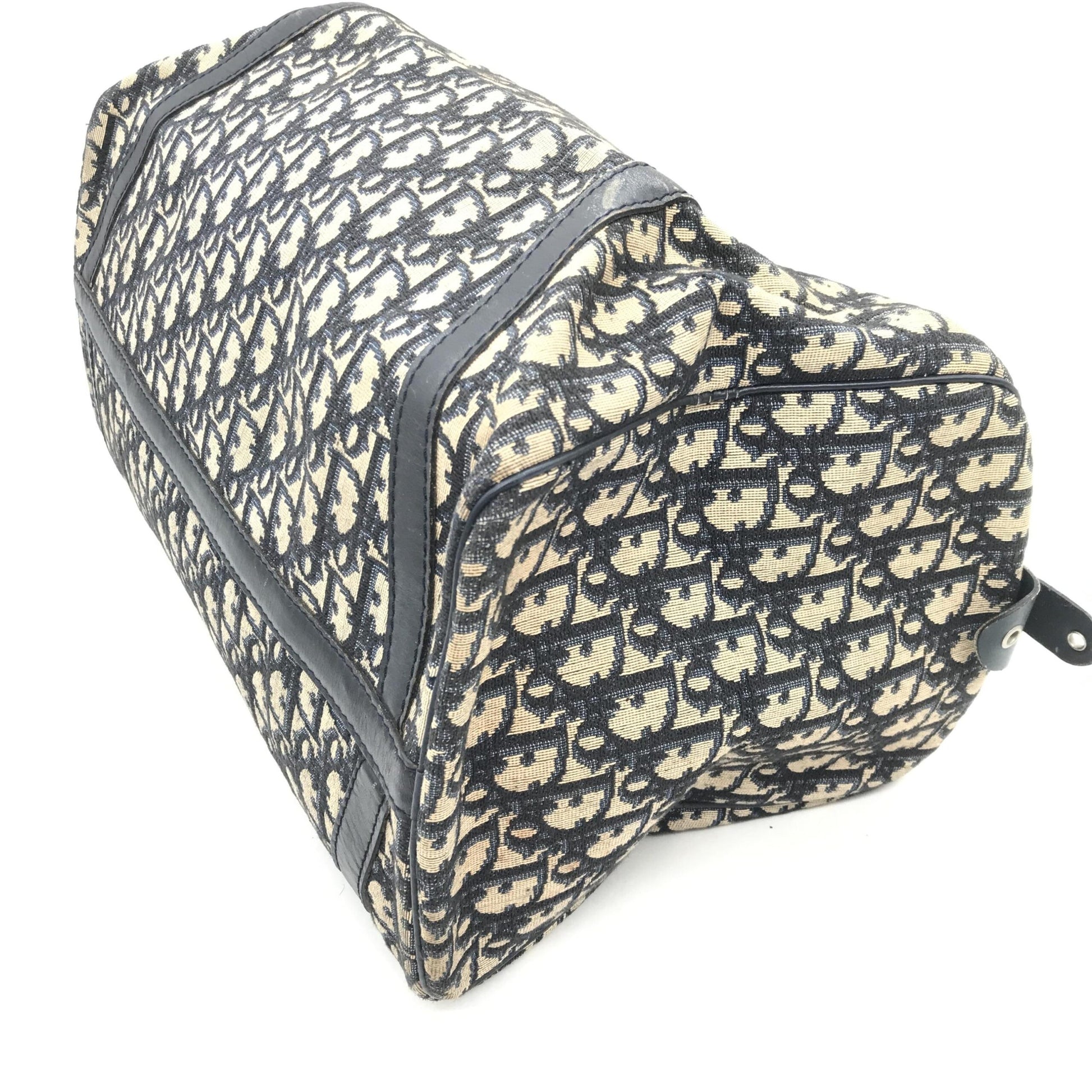 Christian Dior Navy Blue Trotter Canvas Boston Bag