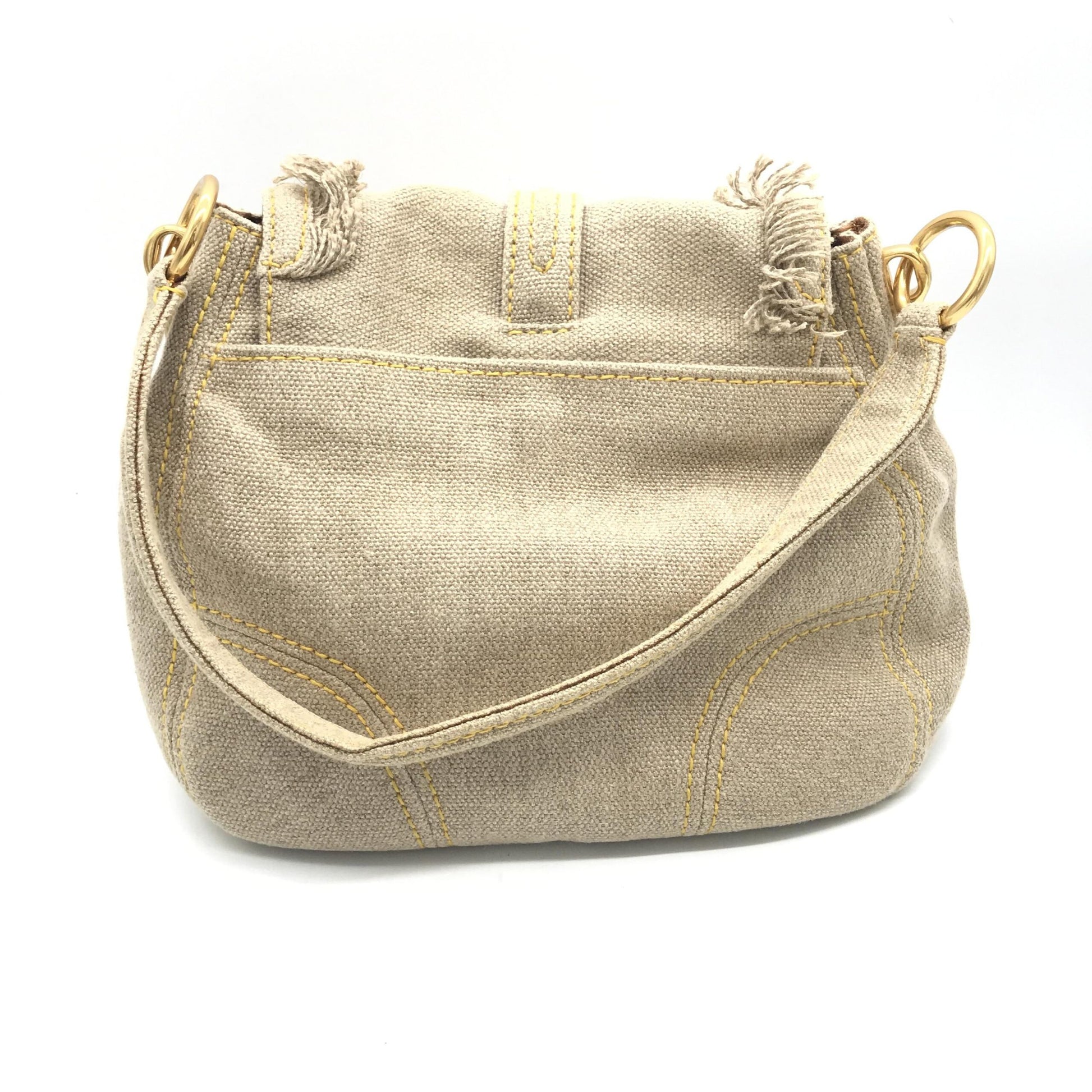 Prada Fringe Canvas Crossbody Handbag With Gold Accents